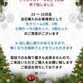 クリスマスケーキご予約状況のお知らせ